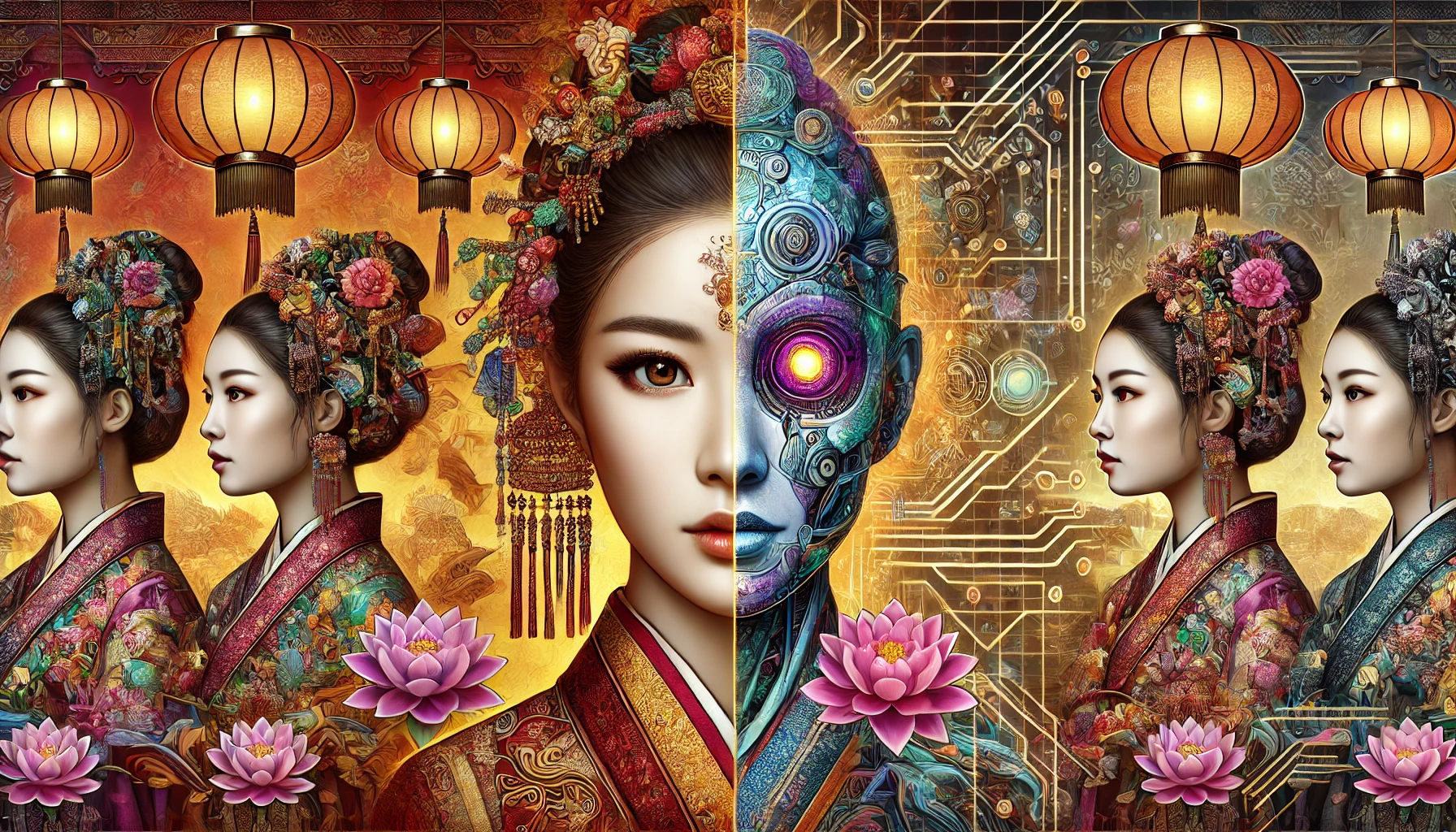 The evolution of beauty standards across history, analyzed by a futuristic AI system.